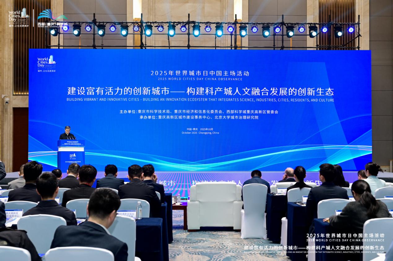 10月28日,2025年世界城市日中国主场活动创新论坛在重庆成功举办,由北京大学承办的“建设富有活力的创新城市”分论坛,以“构建科产城人文融合发展的创新生态”为主题,汇聚国内外城市治理专家、政府代表与企业领袖,集中展示多地创新实践,为推动超大城市现代化治理提供思路与方案。